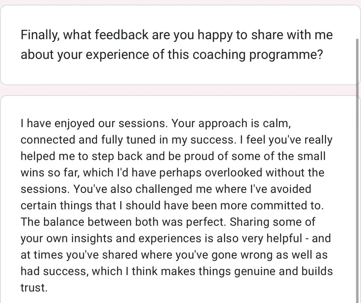 Fortnightly 1:1 coaching to address patterns, not just symptoms