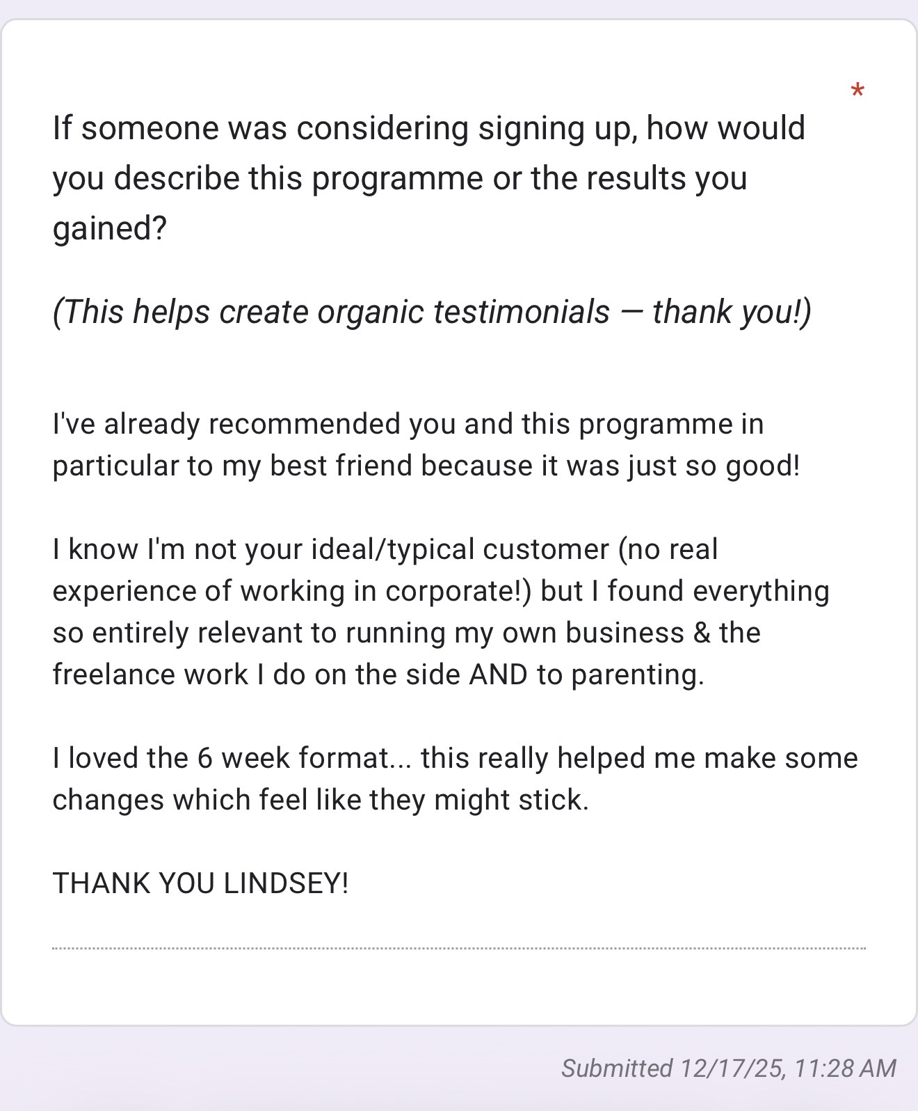 4. After that, we get into the rhythm of fortnightly online 121 sessions